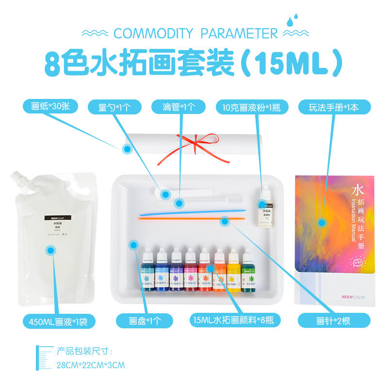 產品名稱:8色水拓畫顏料套裝